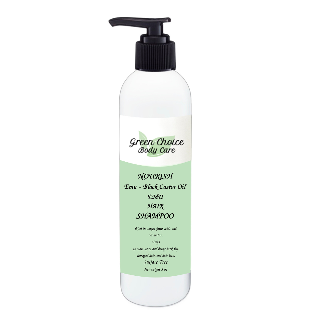 This Emu and Black Castor oil shampoo promotes enhanced hair growth by nourishing and strengthening damage hair. Deeply moisturizing while conditioning hair and scalp, restore softness, strength and shine to hair. Prevents breakage and frizz. Excellent choice for anyone suffering from dry hair, brittle or damage hair, or chemically processed. Black Castor oil is loaded with reparative omegas, emu oil penetrates deep for maximum moisture, leaving your hair much smoother and softer.